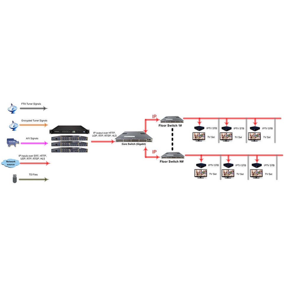 Lecteur multimédia IP Streamer pour streaming IP, avec entrée multi-canaux DVB-T2 DVB-S2 pour la conversion de protocoles et les systèmes IPTV