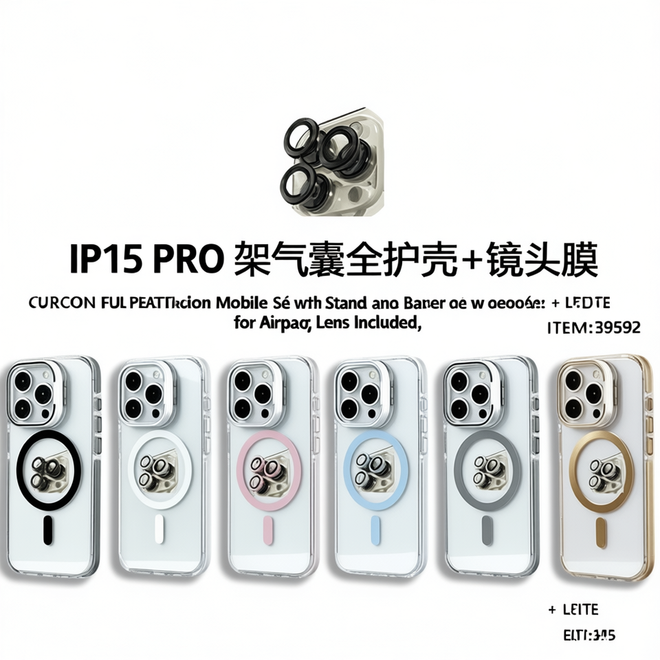 Étui de protection intégrale pour téléphone portable IP15 PRO en TPU+PC avec support magnétique et protection d'appareil photo inclus