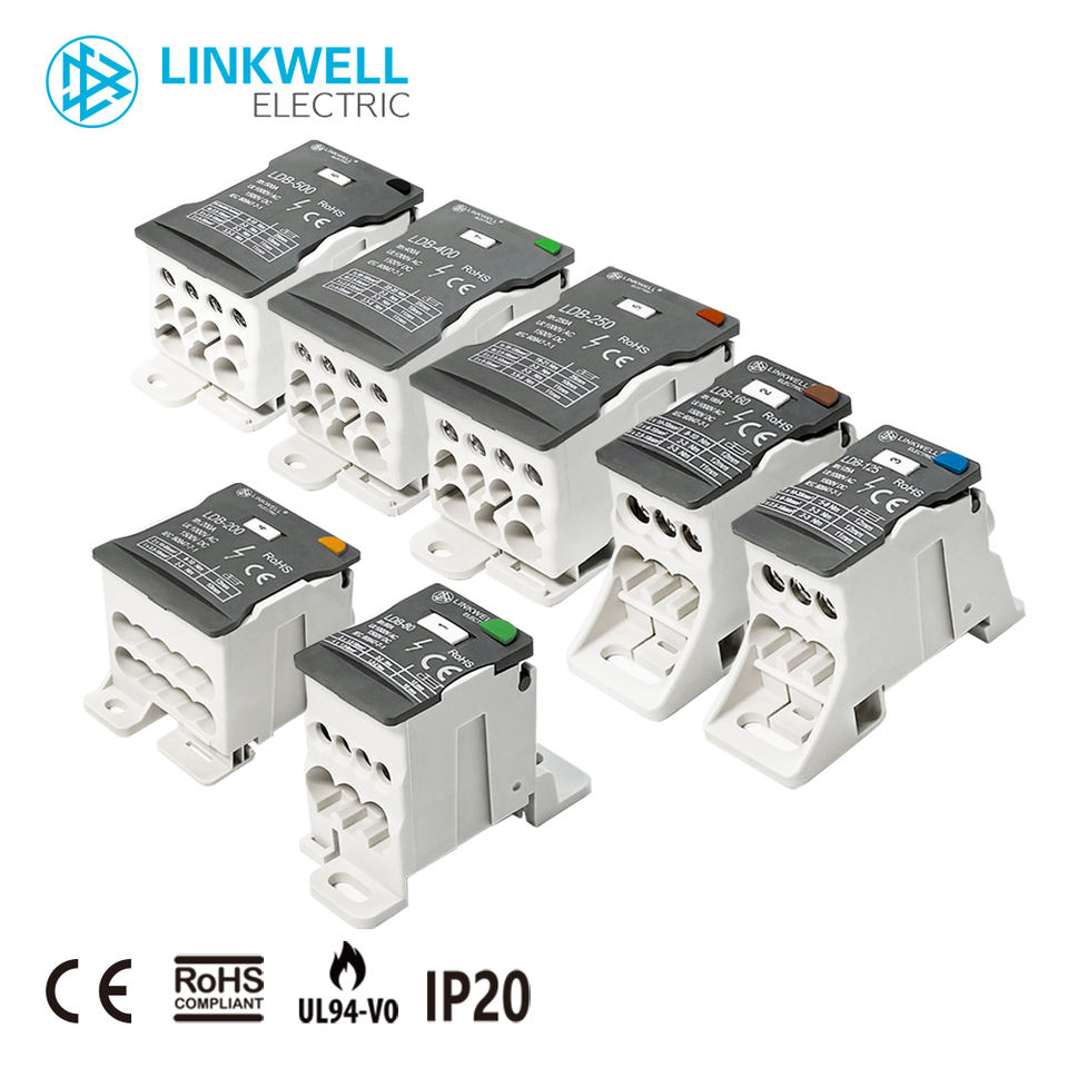 Bloc de jonction de distribution sur rail DIN IP20 250A avec couvercle transparent pour armoires électriques industrielles