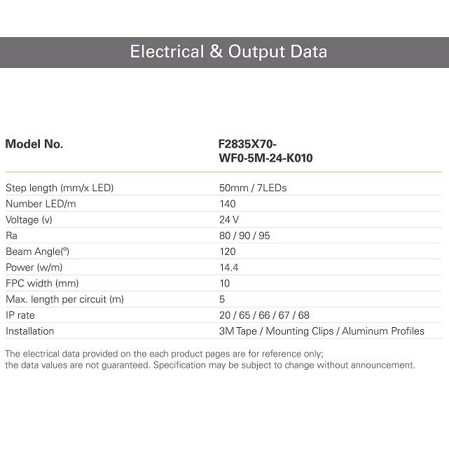 Model Number:2835 Top LEDs (140 LEDs/m) 2835-140-10mm-5m