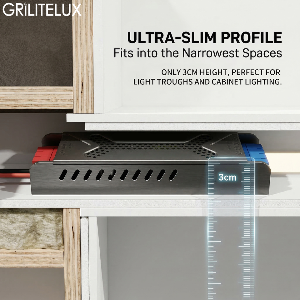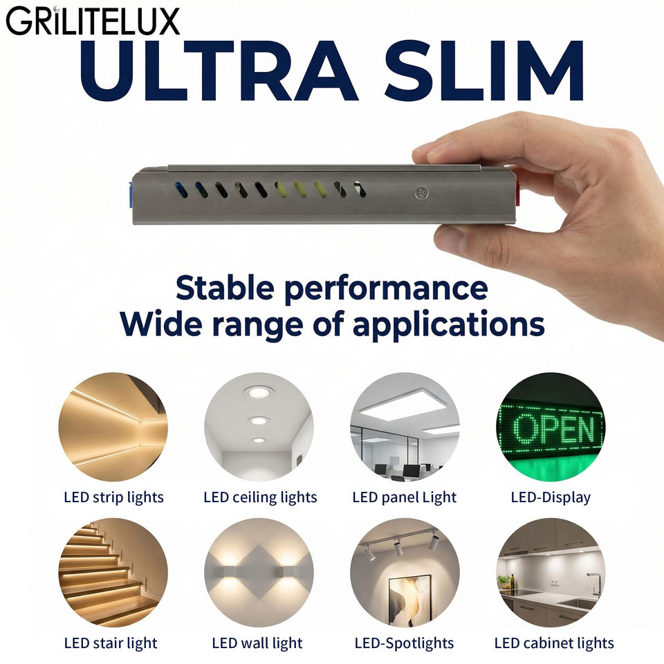 Alimentation LED Slim IP20 100-250V AC vers DC 12V 24V pour Bande LED