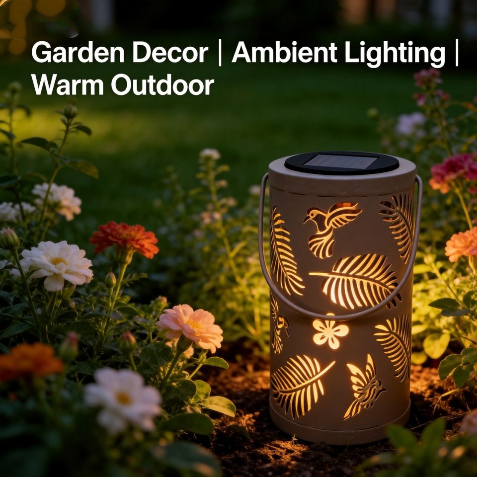 Lanterne solaire d'extérieur étanche à l'eau et à la poussière IP44, lumière chaude sculptée, un compagnon réconfortant les nuits de pluie