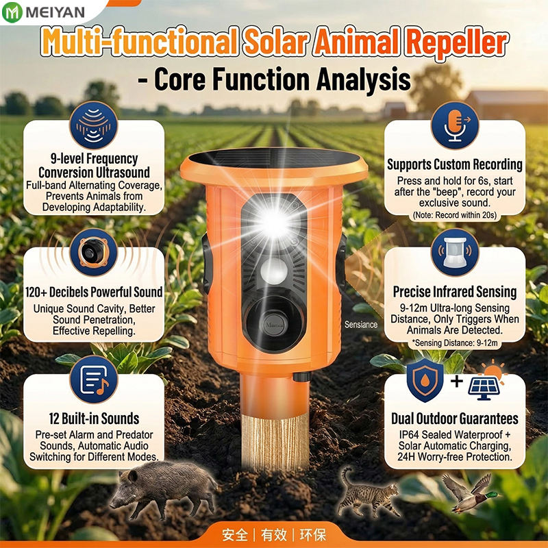 Répulsif Solaire Ultrasonique IP64 Contre les Ratons Laveurs pour Jardin et Cour, 120 dB, Expédition Rapide Directe Usine
