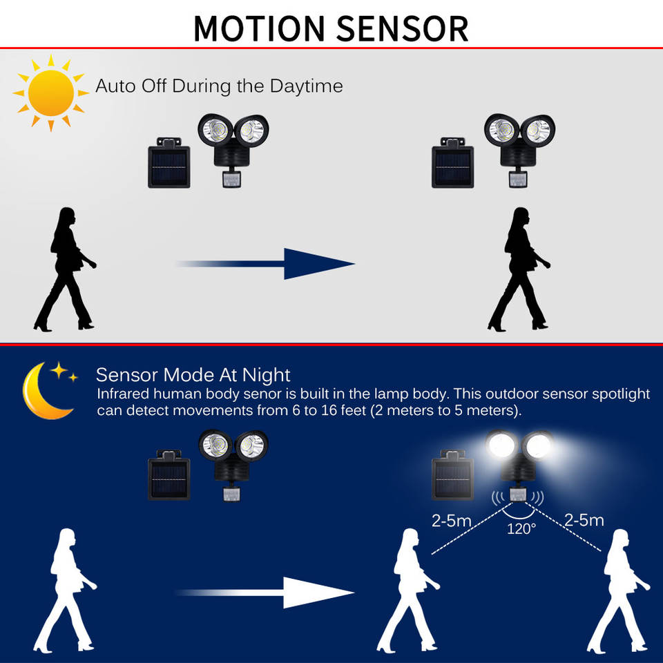 IP65 22 LED lumière solaire double détecteur étanche capteur de mouvement projecteur extérieur jardin cour applique rue lumière de sécurité