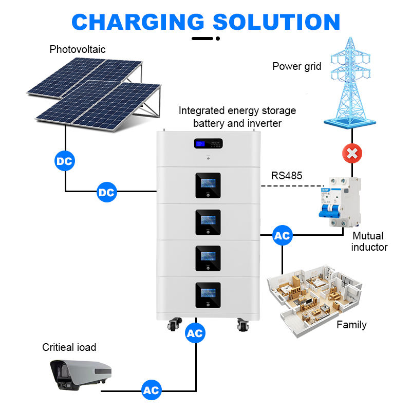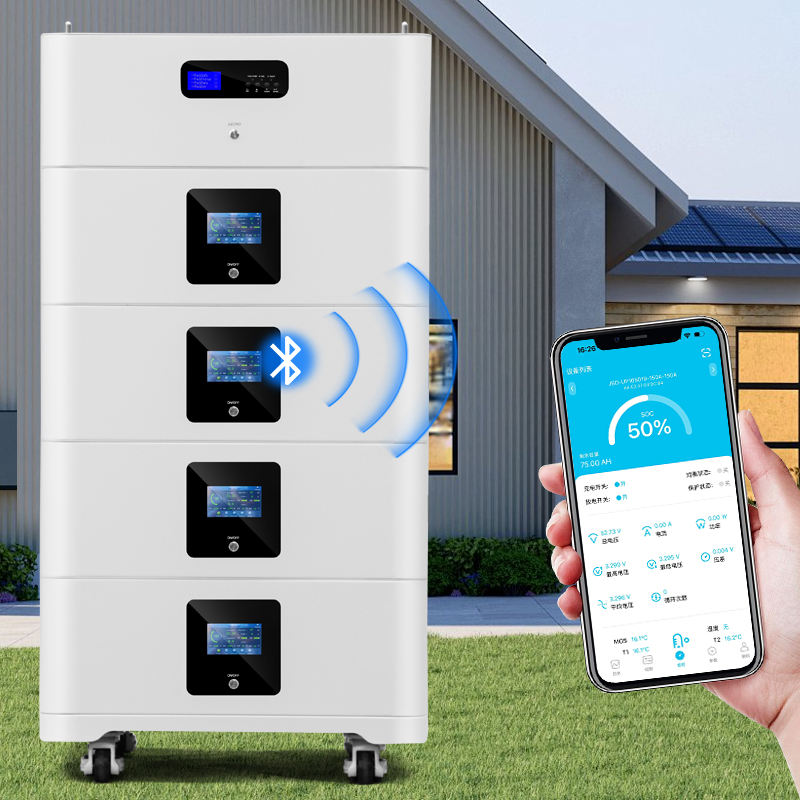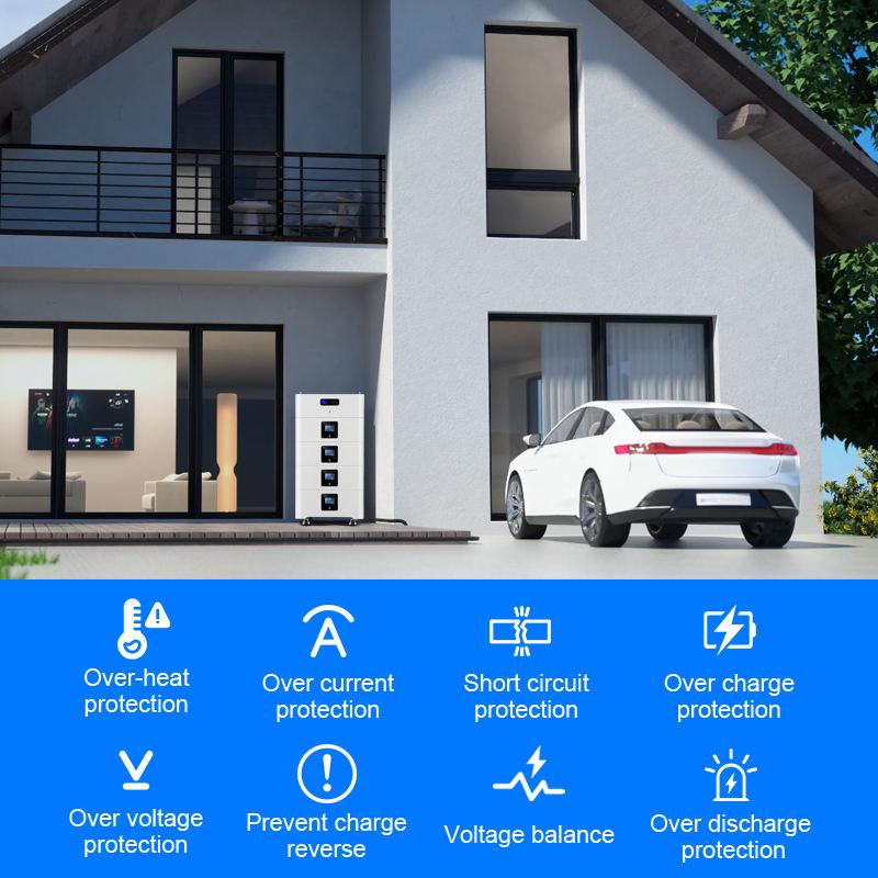 Système de stockage d'énergie domestique tout-en-un 48V avec protection IP65, batterie LiFePO4 empilable, solution solaire rechargeable