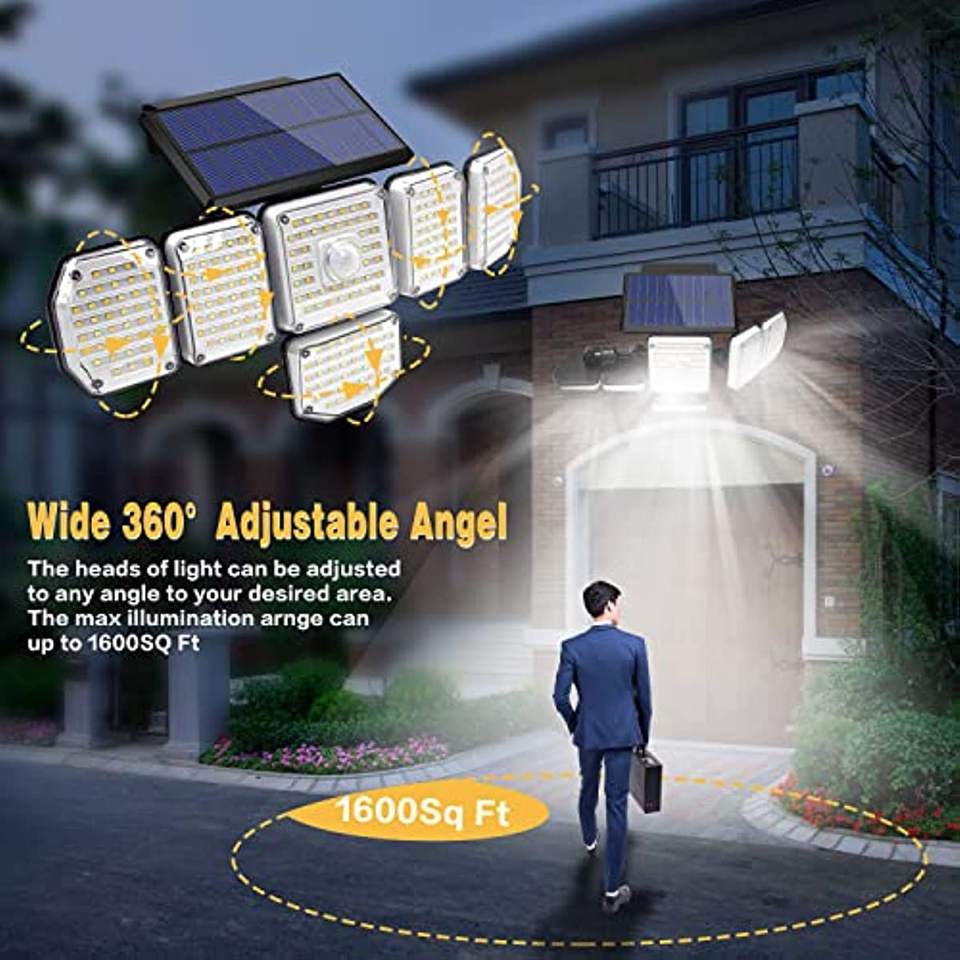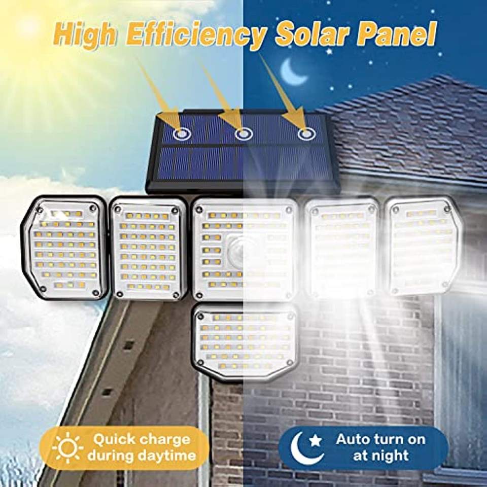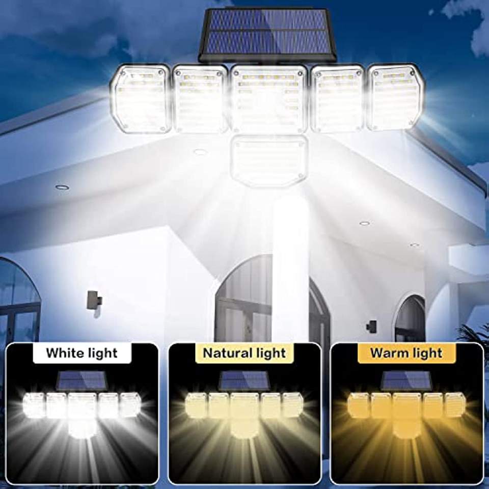 Lampe murale solaire IP65, 256 LED, extérieure, réglable, 6 têtes, détecteur de mouvement, étanche, lumière de sécurité solaire, projecteur de rue