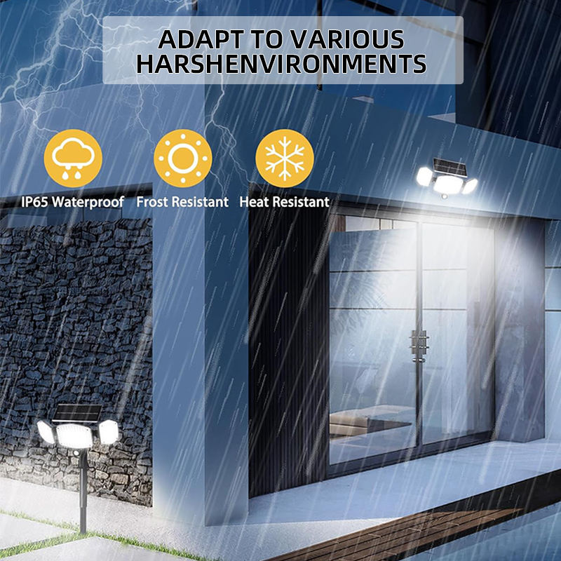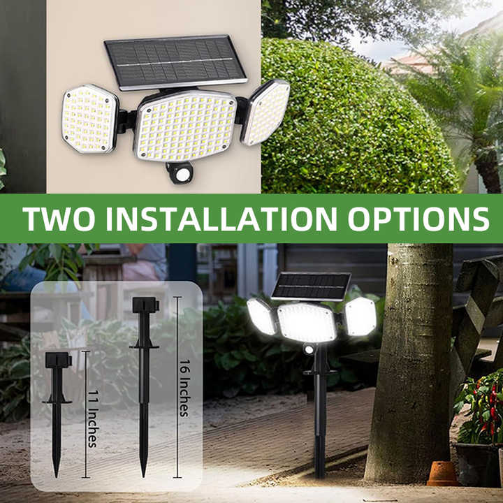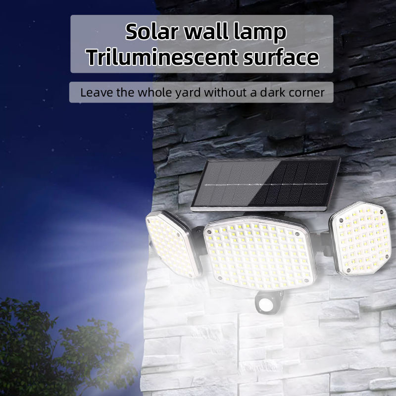 Lampe solaire murale extérieure LED nouvelle génération étanche IP65 avec 3 têtes et capteur de mouvement pour maison, terrasse, clôture, jardin