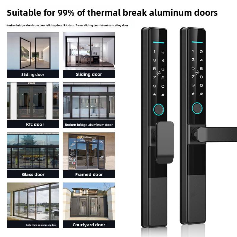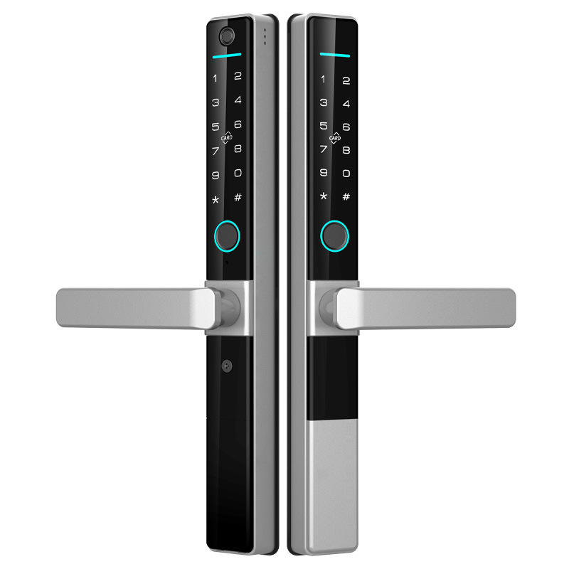 Serrure de porte intelligente extérieure étanche IP65, double lecteur biométrique, profil mince, cadre en alliage d'aluminium, contrôlée par application