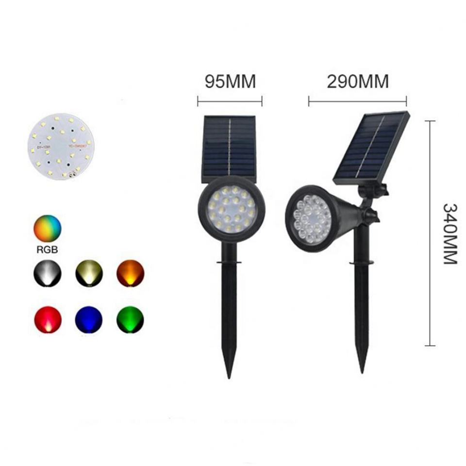 Projecteurs solaires RGB étanches IP65 pour jardin, 18 LED, éclairage extérieur pour pelouse, allée, piquet lumineux décoratif