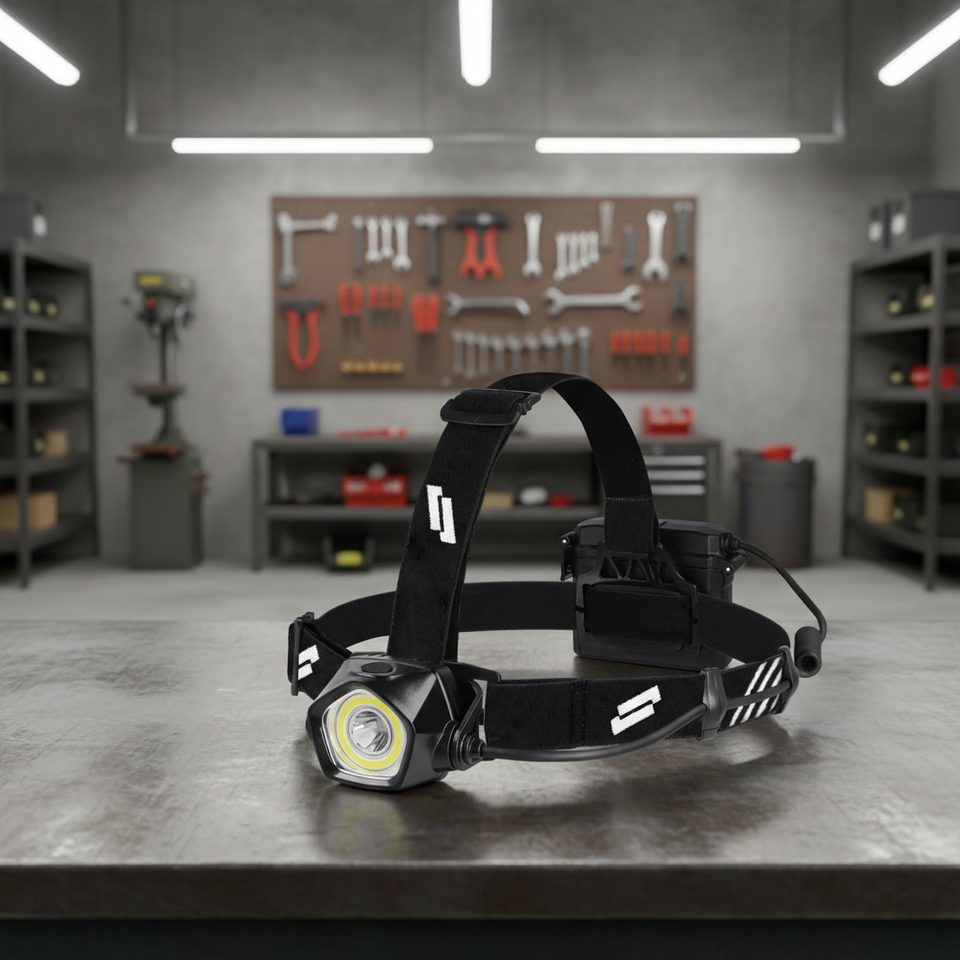 Lampe frontale LED rechargeable étanche IP66 pour le camping et les activités de plein air, 690 lm, corps en plastique, technologie SPOT + COB