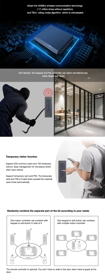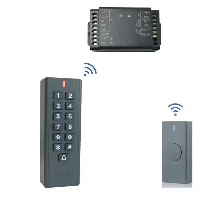 Kit de contrôle d'accès intelligent sans fil étanche IP66 avec bouton de sortie, télécommande, clavier et lecteur de cartes RFID