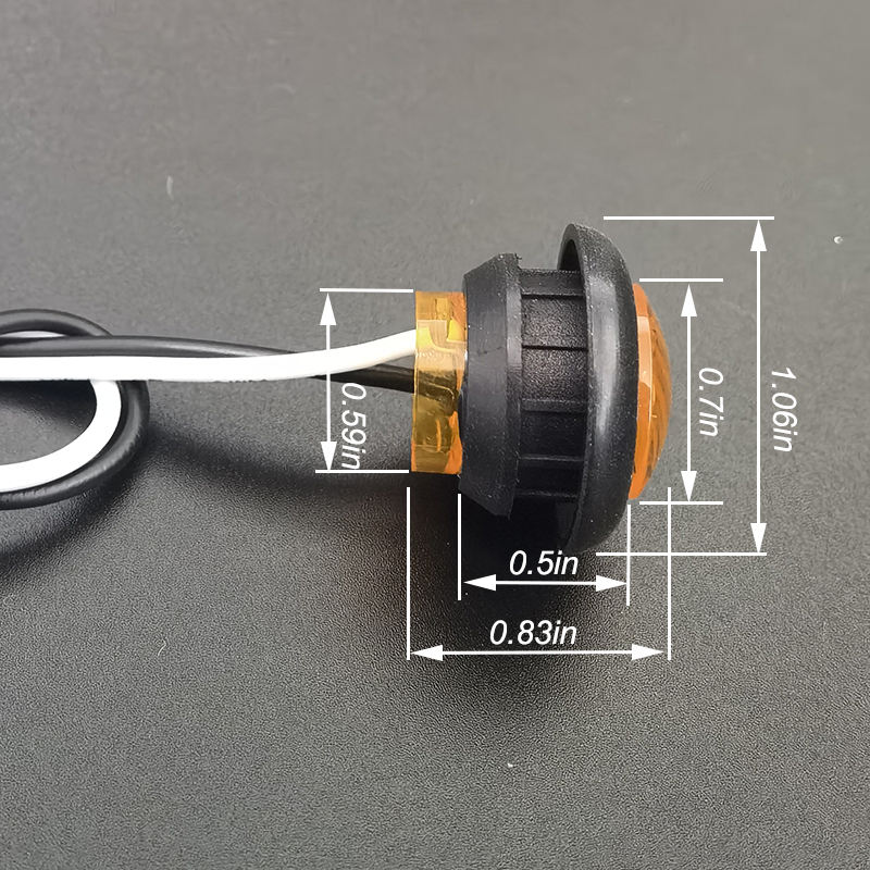 Feu de position latéral rond LED IP67 SAE DOT 3/4 pouce avec fil de type balle pour camion, remorque, camping-car et bateau