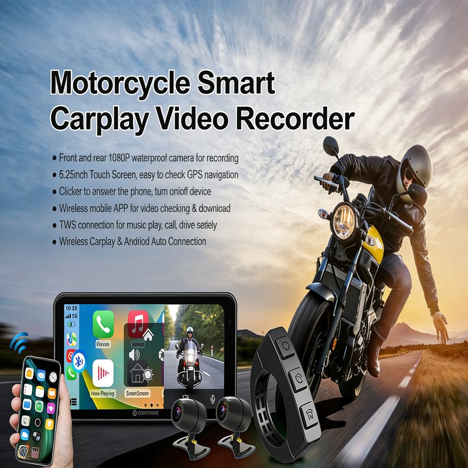 Écran de navigation pour moto étanche IP67 6,25'' avec CarPlay, double caméra, TPMS, Android Auto sans fil pour toutes les motos