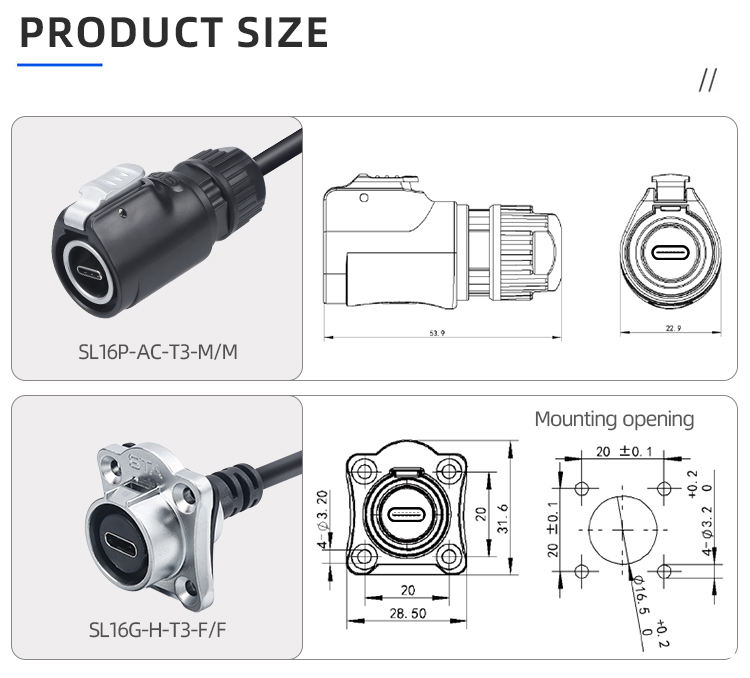 IP67 étanche M16 LP16 Type C adaptateur mâle femelle prises prise montage sur panneau connecteur d'aviation industrielle