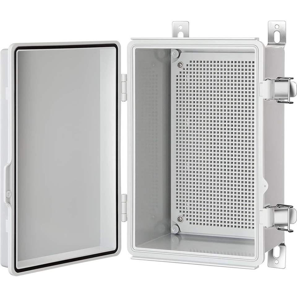 Boîtier de jonction en plastique étanche IP67 pour projets électriques, avec couvercle à charnière gris, plaque de montage, support mural, raccords pour conduites