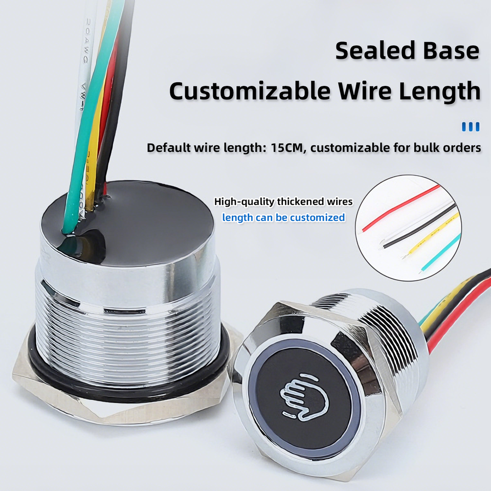 Bouton de contrôle d'accès tactile encastré en métal intelligent étanche IP67 avec voyants bicolores, DC 6-24V, temporisation 1,5s