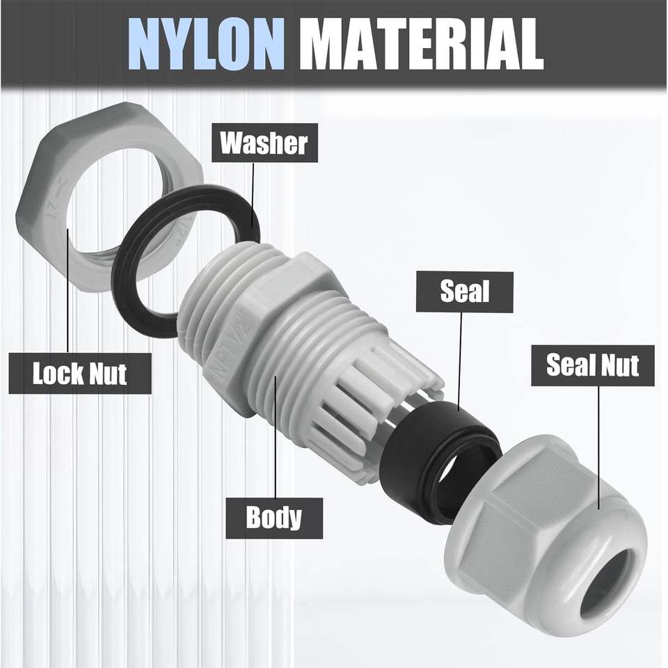 Poignée de cordon IP68 avec connecteur en plastique nylon imperméable gris PGPG25 presse-étoupe