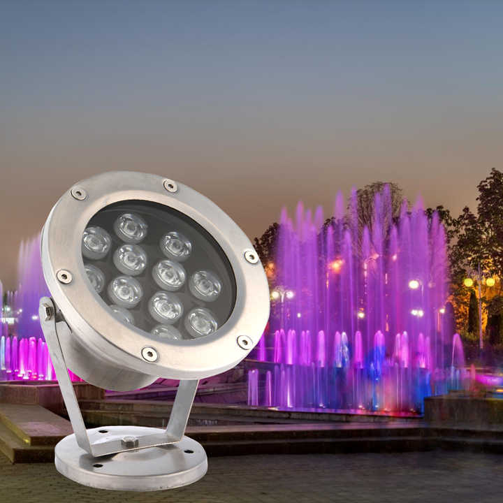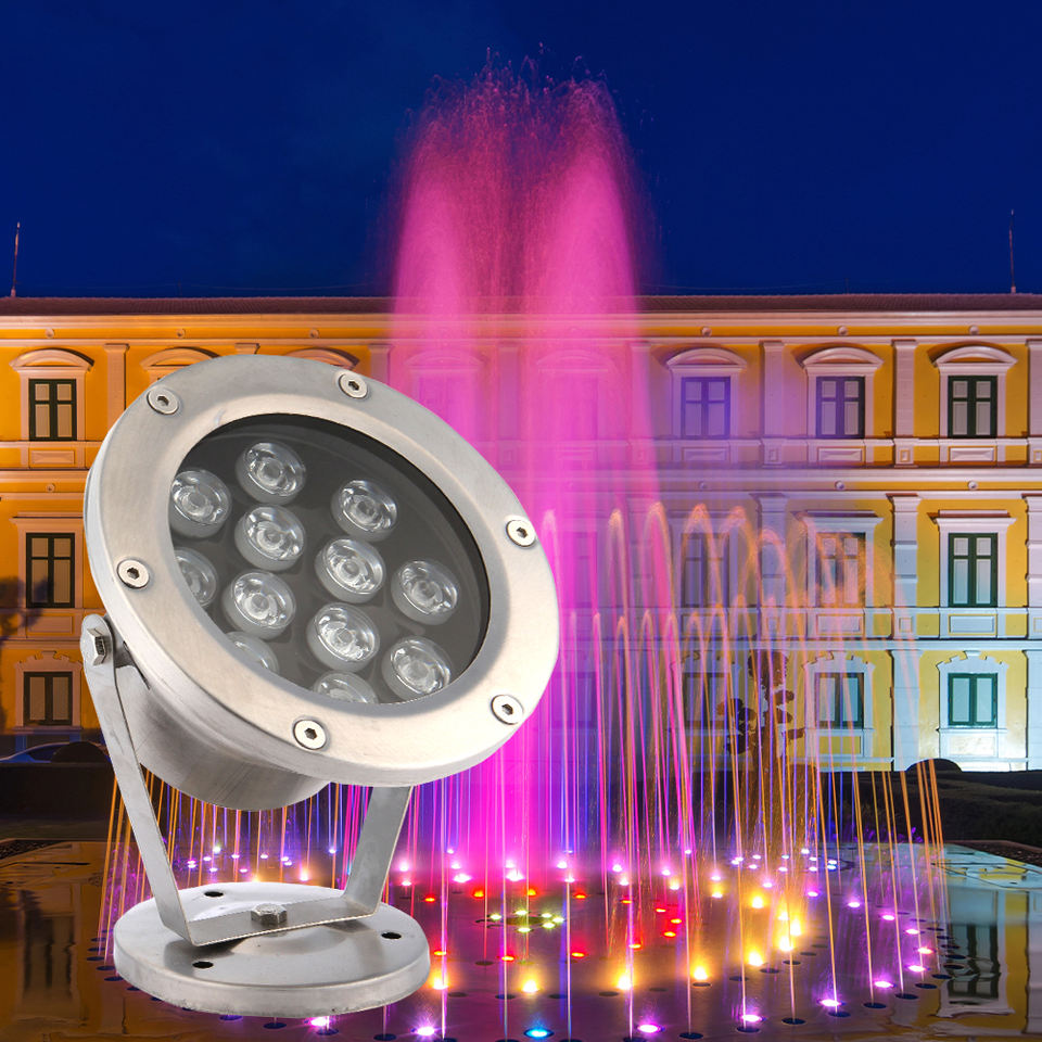 Projecteur LED RGBW Submersible IP68 9W-18W DC24V en Acier Inoxydable pour Fontaine de Jardin, Étang, Cascade, Spa