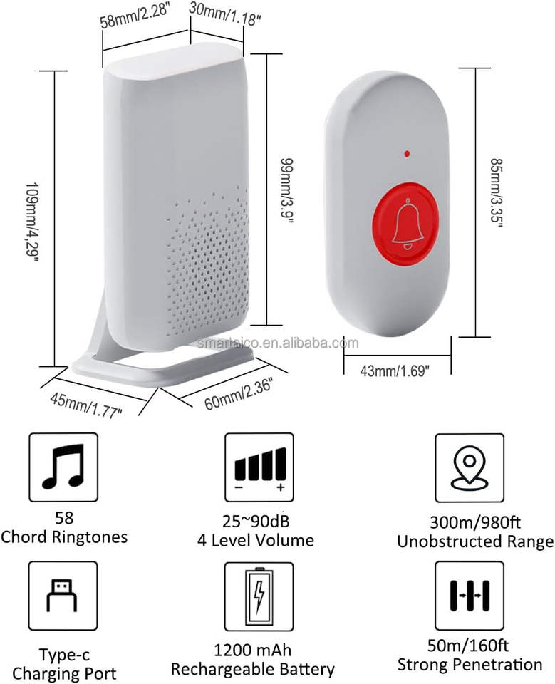IP68 Waterproof Call Button Rechargeable Portable Receiver Call System Wireless Caregiver Pager Bell for Home Elderly Nurses