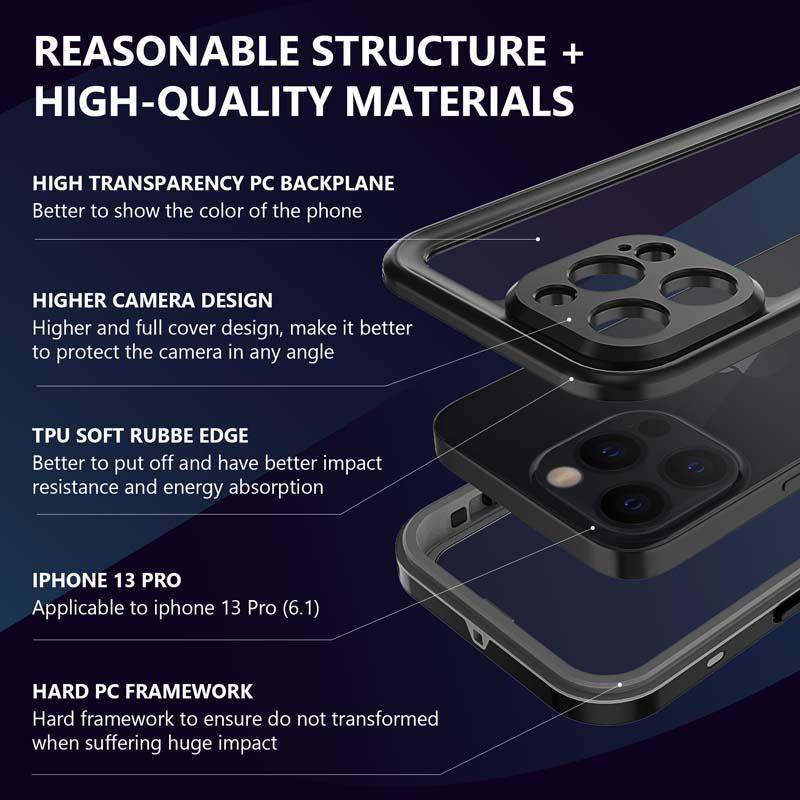 Étui de téléphone étanche IP68 avec protection d'écran intégrée, antichoc, couverture intégrale pour iPhone 17 15 14 13 Pro Max 16 Plus 12 Mini