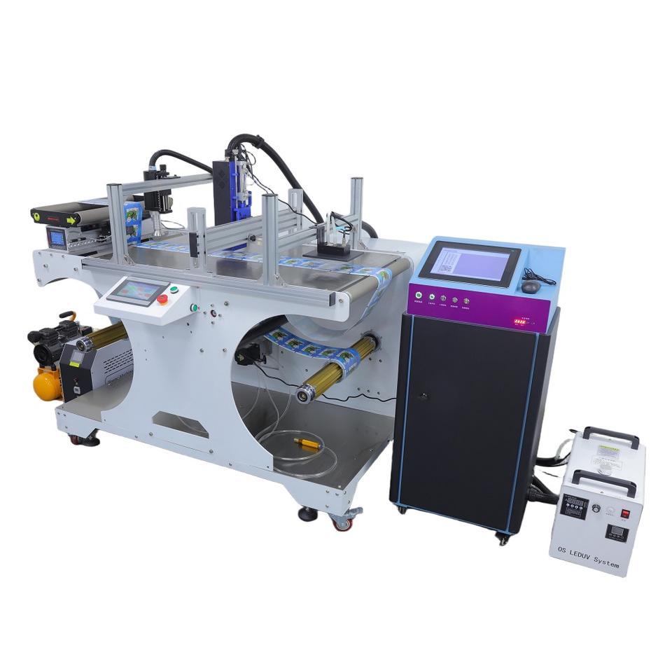 Machine d'impression jet d'encre UV rouleau à rouleau haute vitesse IPS-RW600+IPS-6501 avec guide de rouleau haute précision pour films d'étiquettes et enrouleur
