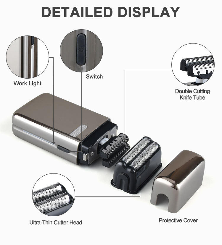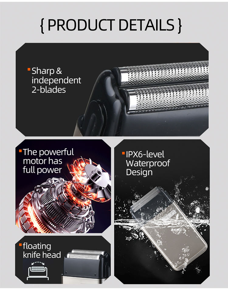 Rasoir électrique à lames oscillantes étanche IPX6, 2 lames, rechargeable, outil de rasage pour homme, rasoir à grille