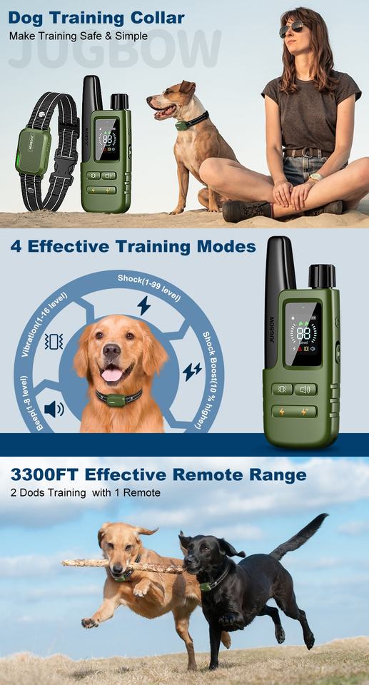 Collier de dressage électrique pour chien avec télécommande, portée de 4200 pieds, dispositif anti-aboiement rechargeable en plastique, pour chiots et animaux de compagnie