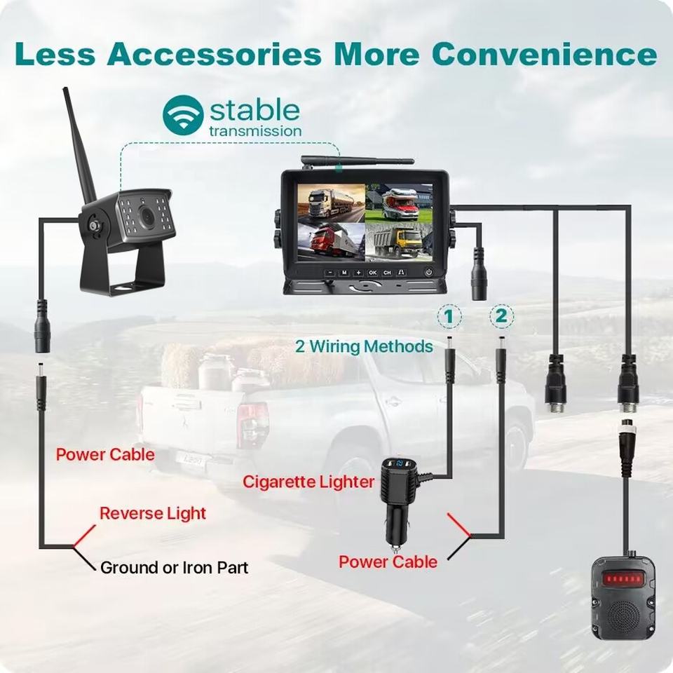 Alarme BSD AI quad split sans fil iPoster 7in avec enregistrement en boucle alarme amx 256G avec kit de 4 caméras de recul sans fil IR