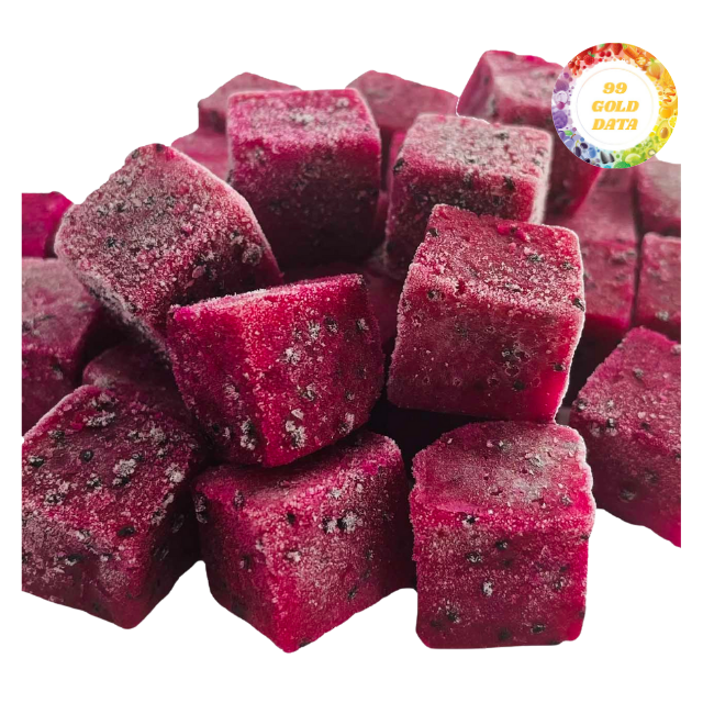 Fruit du dragon surgelé IQF avec couleur naturelle et goût sucré, emballé dans des sacs PE ou des cartons, prêt pour les acheteurs mondiaux