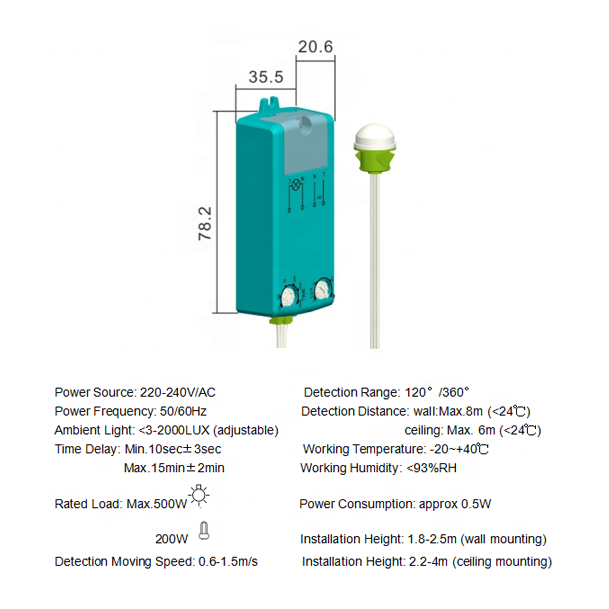 Hauteur d'installation:2.2-4m