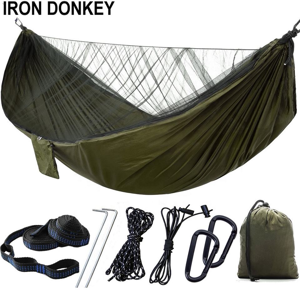 IRONDONKEY extérieur à ouverture rapide anti-moustiques 210T Parachute Camping hamac avec moustiquaire hamac