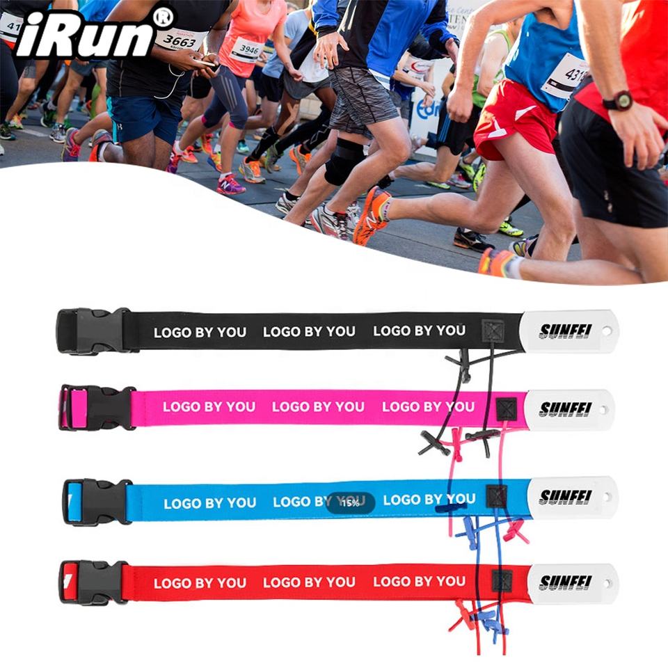 IRun couleur personnalisée en plein air Triathlon Marathon réglable élastique ceinture taille hanche porte-cartes course numéro ceinture