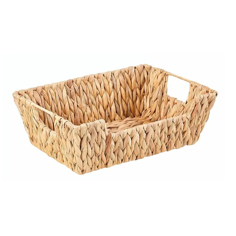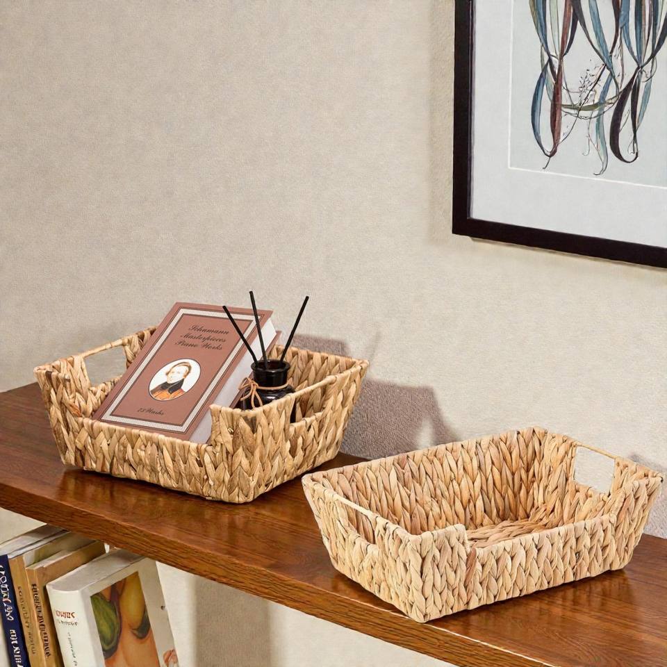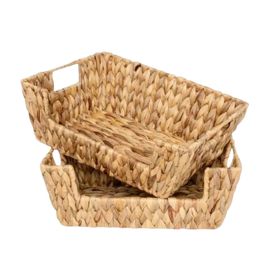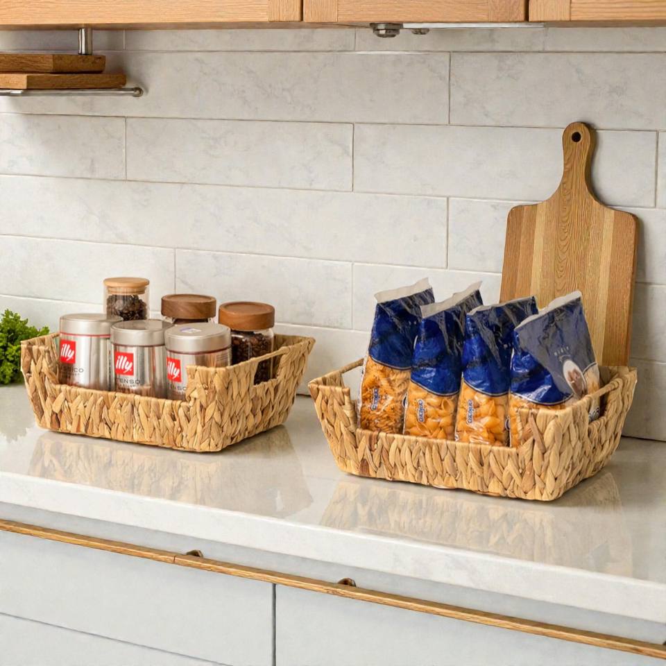 ISLA Lot de 2 paniers de rangement ouverts en jacinthe tressée pour garde-manger, organisateurs tissés avec poignées découpées pour étagères domestiques et présentoirs de vente au détail OEM