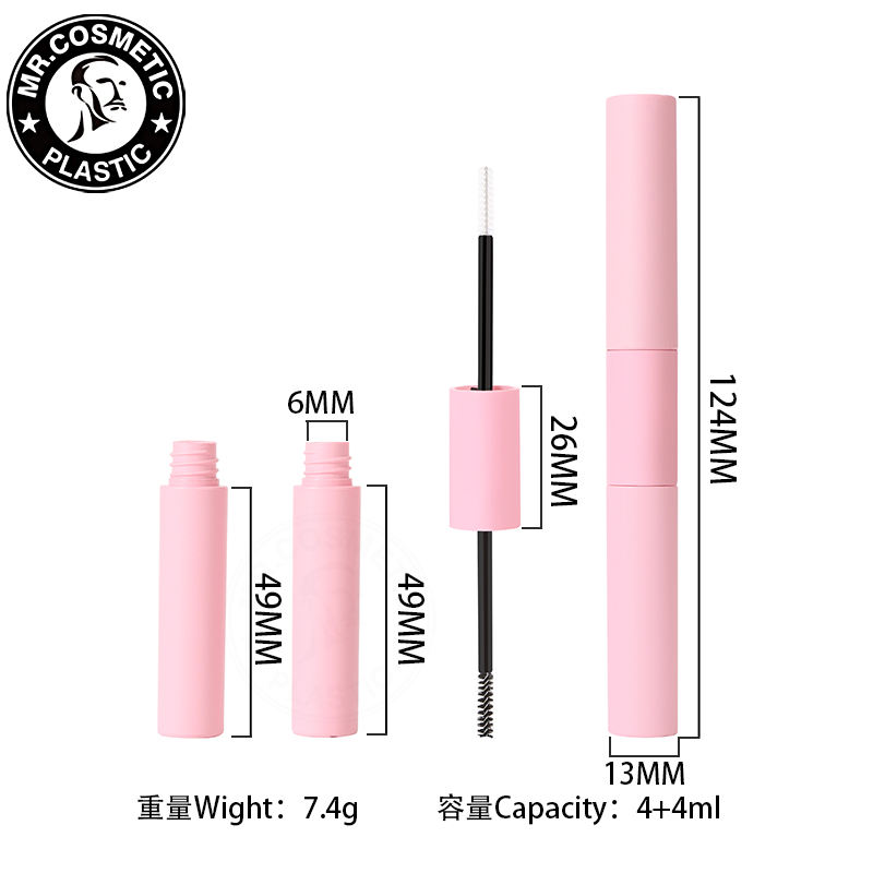 ISMAN CDL20 8ml Tube de mascara rose à double embout en plastique avec bouchon à vis, applicateur 2-en-1 pour eye-liner et colle à cils, emballage vide avec brosse