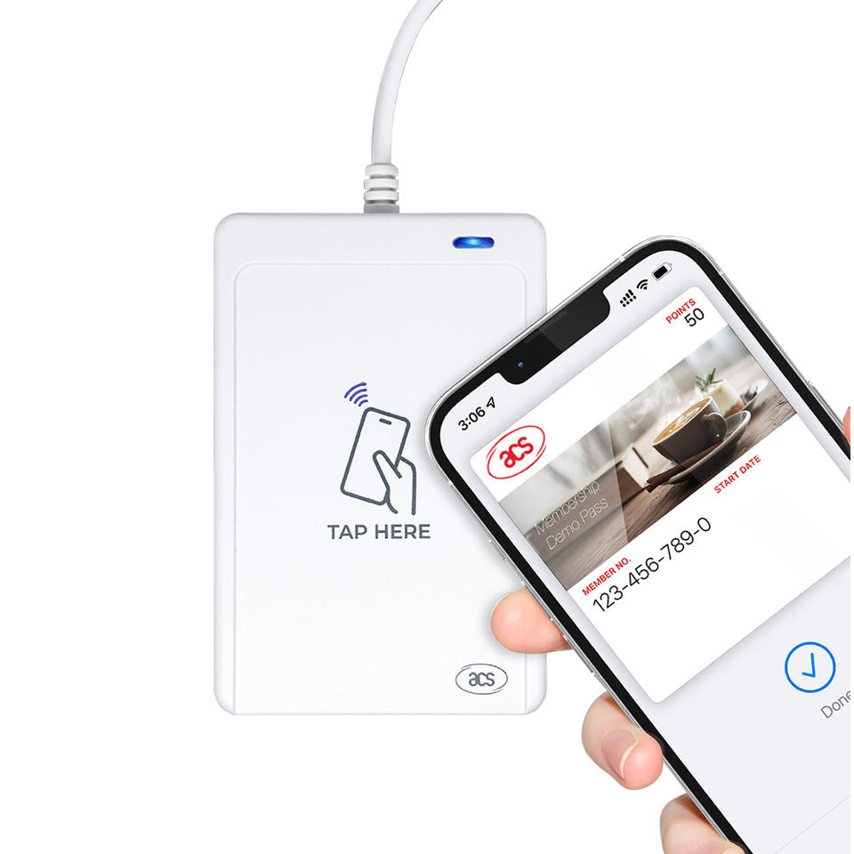 Lecteur NFC pour portefeuille mobile USB ISO 18092, compatible Apple et Google VAS Smart Tap ACR1552U-MW
