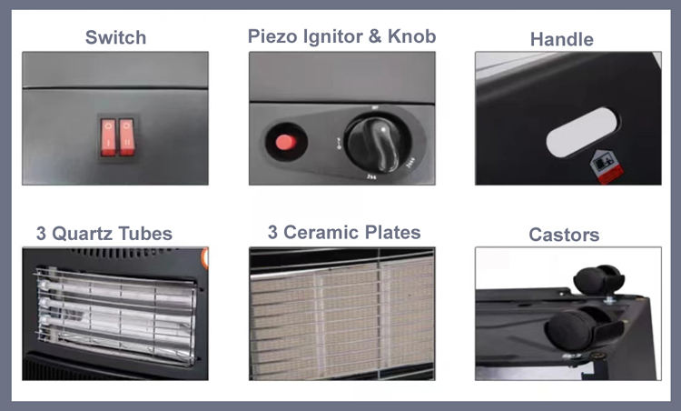 ISO 4200 W Portable Propane Cylindre Italien Chauffage Au Gaz 3 Plaques En Céramique pour La Maison Hiver Salle De Bains Chambre Salon
