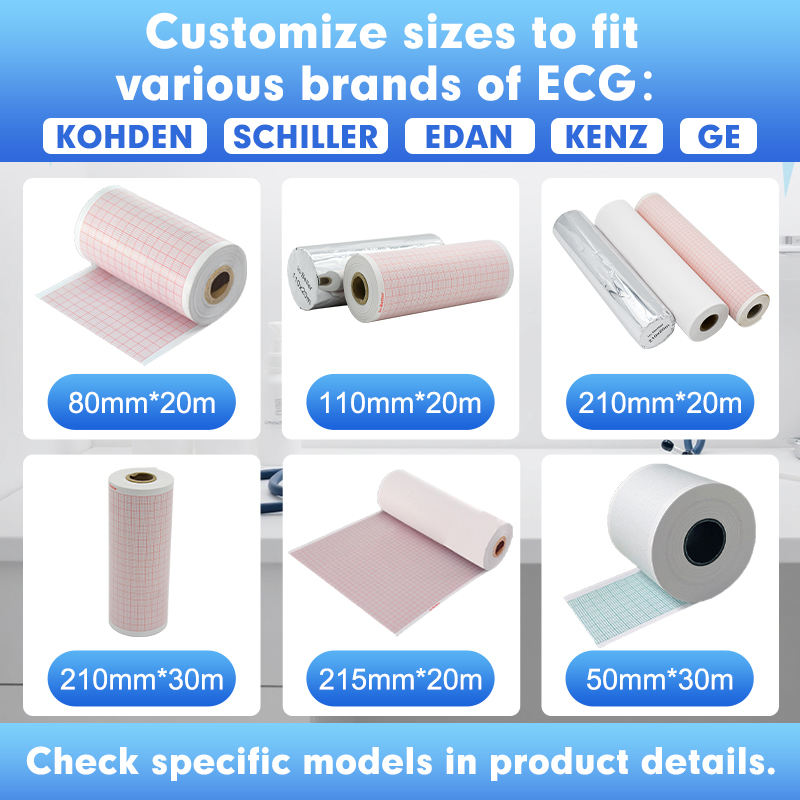 Papier d'électrocardiogramme à 6 canaux de qualité hospitalière marqué ISO CE 110mm 210mm compatible avec Philips ECG