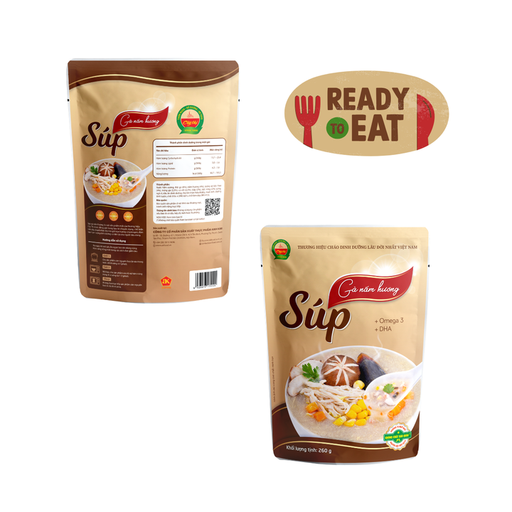 Soupe instantanée certifiée ISO HACCP, substitut de repas au poulet Shiitake et champignons pour des vies occupées, soupe au poulet facile et rapide au Vietnam