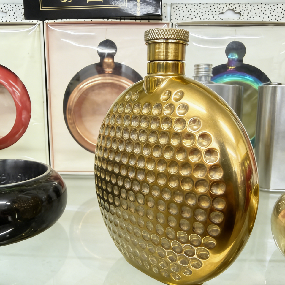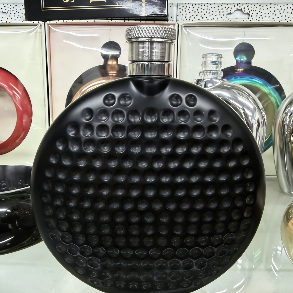 Gourde ronde personnalisée certifiée ISO9001 - Usinage CNC, électro-érosion à fil, acier inoxydable 304, finition martelée, cadeaux personnalisés