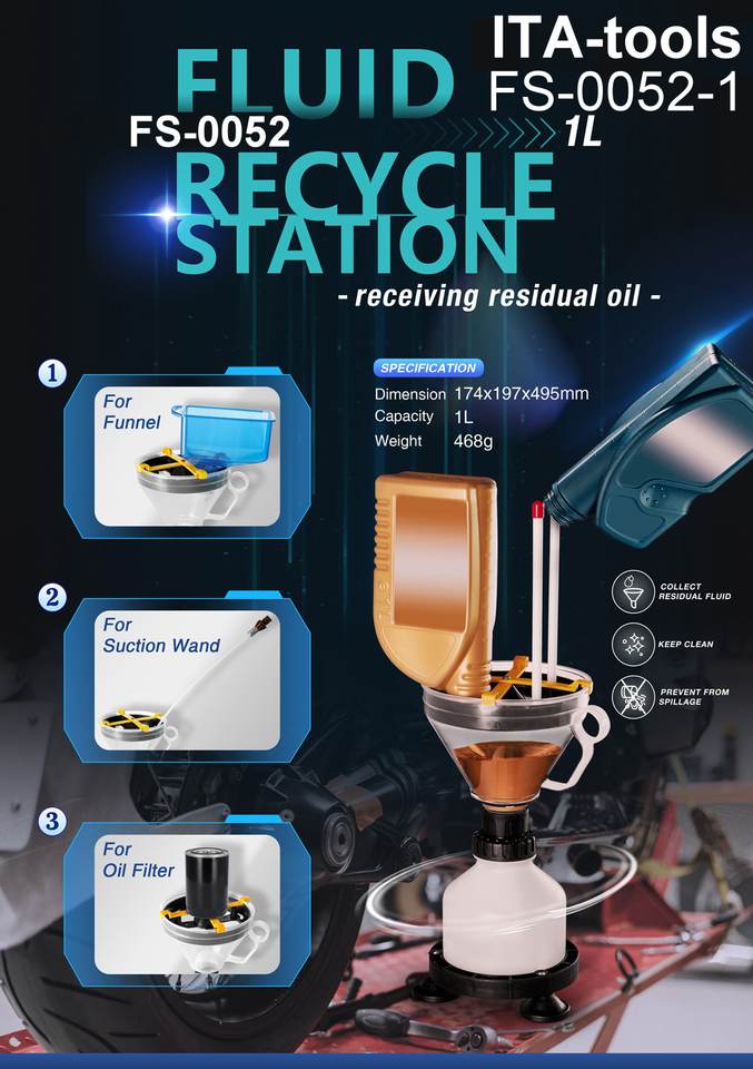 ITA Tools FS-0052-1 Station de recyclage de liquides 1L pour huiles usagées, fabrication ODM/OEM, Taïwan