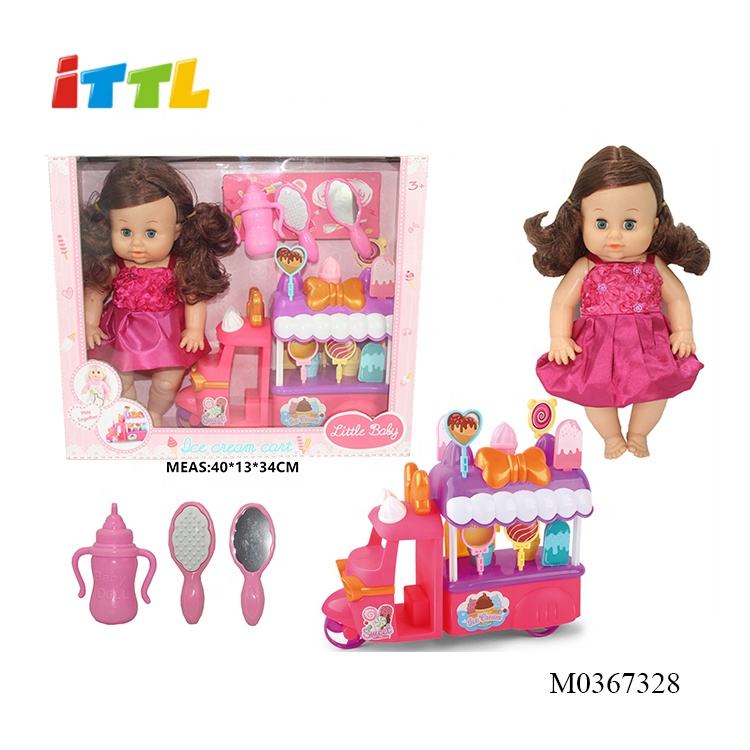 ITTL 14 pouces boisson et pipi bébé poupée ensemble de jeu lit et poussette vinyle poupée poussette jouet pour les filles