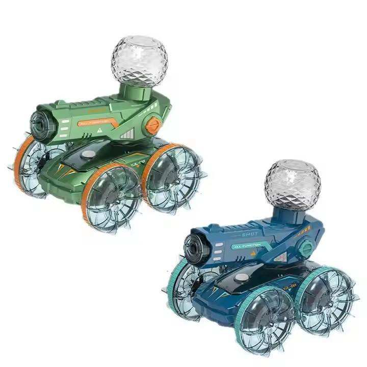ITTL double montre télécommande 360 rotatif clignotant lumière roue transparente amphibie tirer eau pulvérisation RC cascadeur voiture jouets