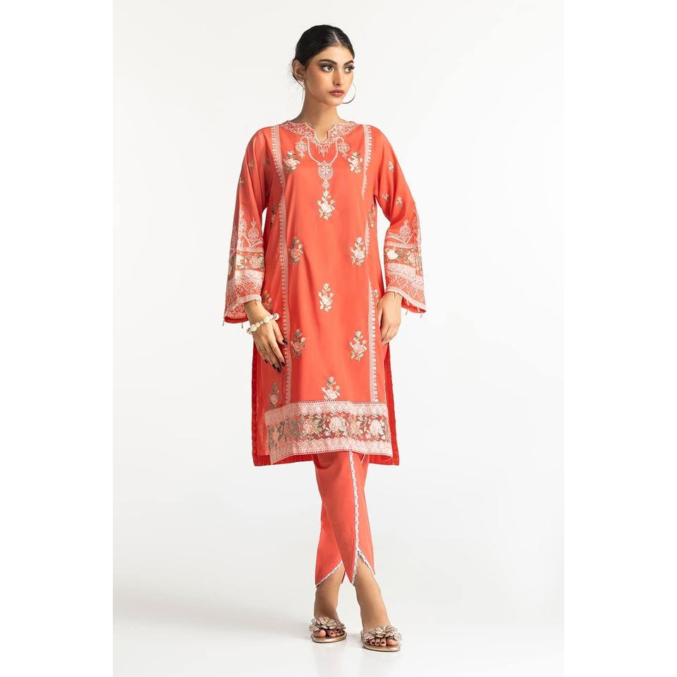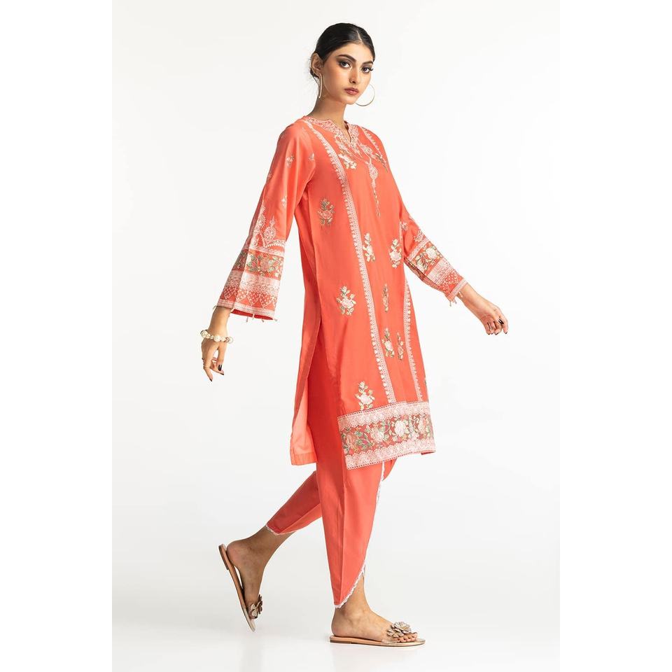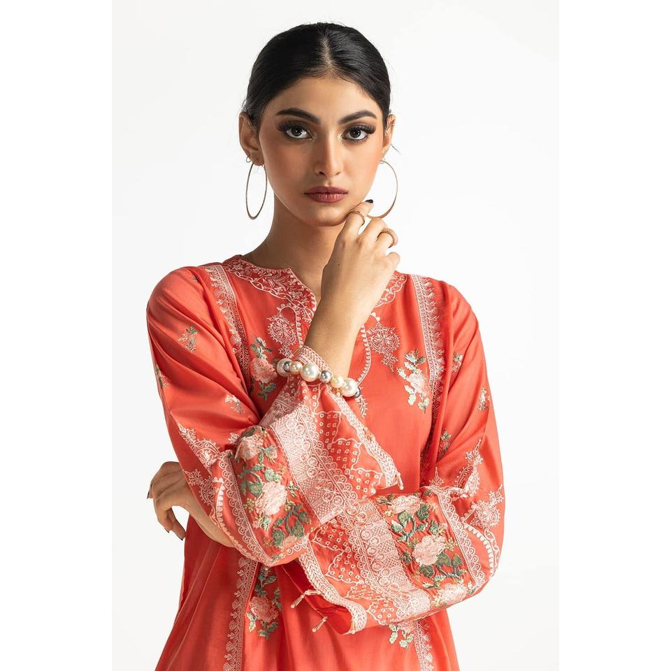 IUSTTS-170 Haut en mousseline de coton brodé à manches trois-quarts avec shalwar tulipan
