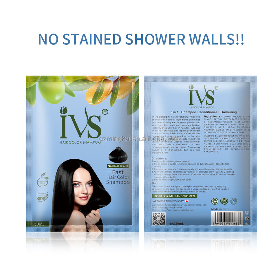 Teinture capillaire IVS pour usage domestique, 10 minutes, 30 ml, shampoing colorant pour cheveux, 4 couleurs, coloration permanente pour cheveux, shampoing pour cheveux pour marque privée, OEM, vente en gros