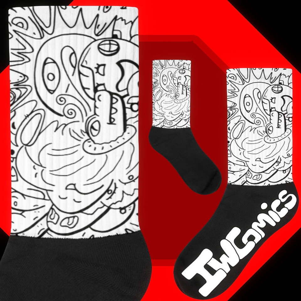 Chaussettes de dessin animé IW Comics # 1 Robotic Lizard Portal Chaussettes courtes respirantes pour usage quotidien avec imprimé doodle dessiné à la main