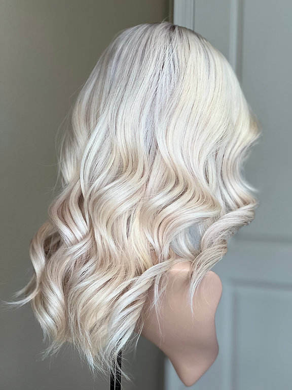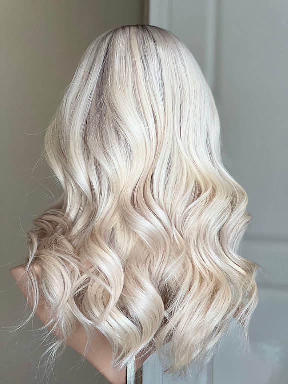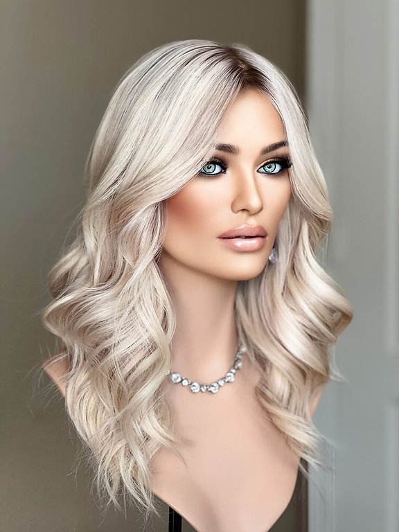 Couleur des cheveux:Couleur blonde glacée avec des racines sombres