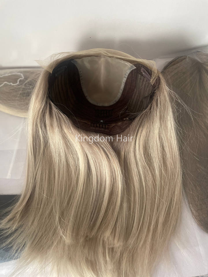 Glace Blonde Highlight Couleur Européenne Cheveux Dentelle Top Unique Noeud Lace Front Perruque Avec Diamant Dentelle pour les Femmes Perte de Cheveux