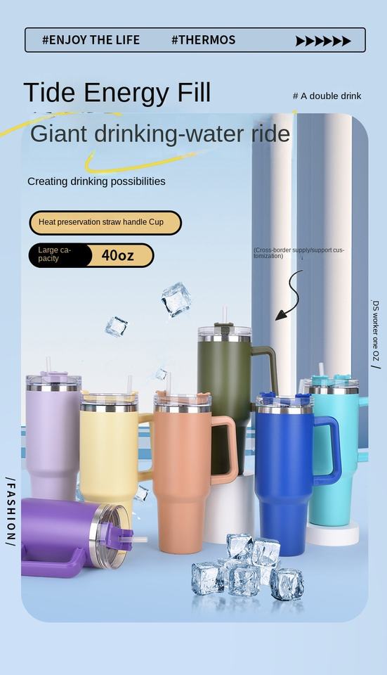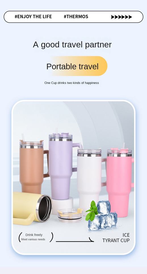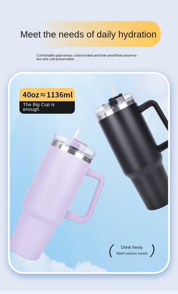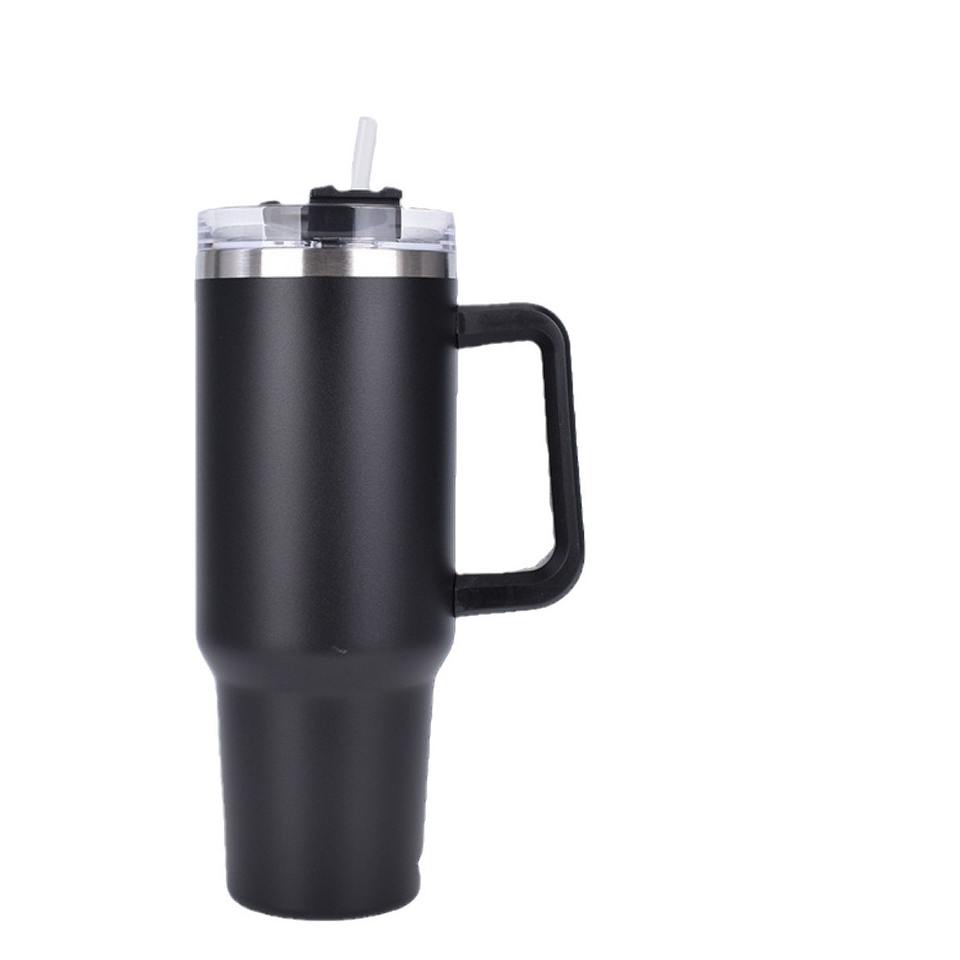 Thermos Ice Bully 40oz avec poignée et paille pour voiture, en acier inoxydable 304, conservation de la chaleur sous vide, anti-chute, portable, café froid, bureau