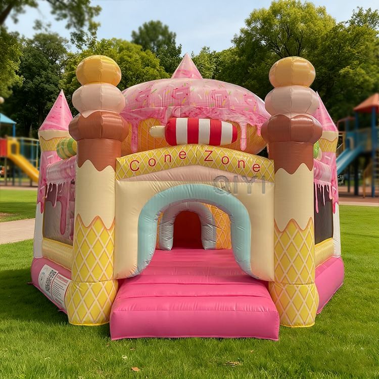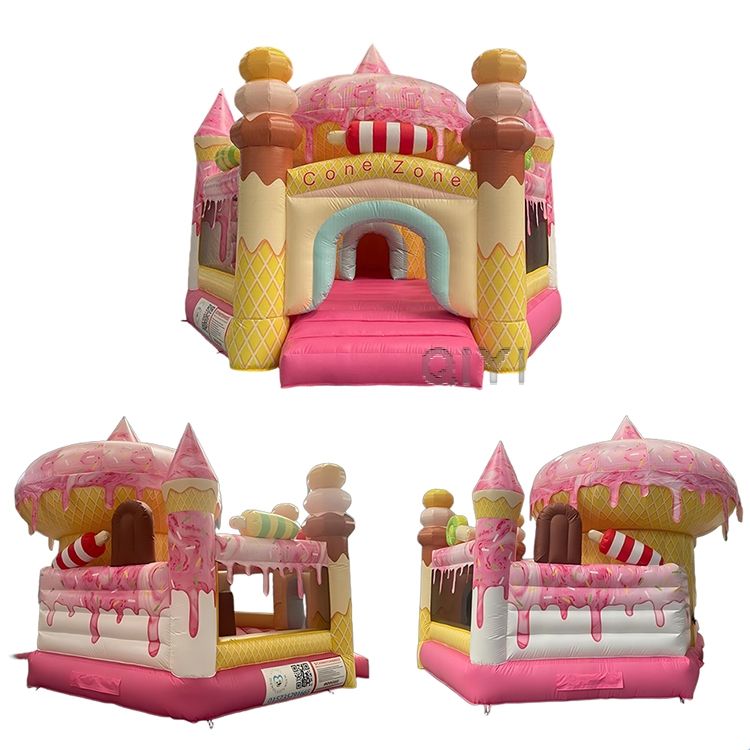 Château gonflable commercial pour enfants, idéal pour les fêtes de filles, avec thème crème glacée