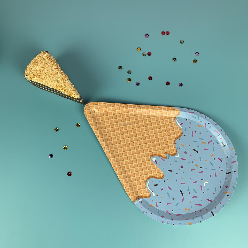 Assiettes à dessert jetables sur le thème de la crème glacée Vaisselle de fête d'anniversaire et fournitures de mariage Décorations d'assiettes à dîner